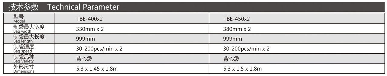 機(jī)器特性 該機(jī)適用于對(duì)高密度聚乙烯(HDPE),低密度聚乙烯(LDPE)簡(jiǎn)狀本色和彩印塑料薄膜進(jìn)行熱封熱切制袋,雙刀雙道生產(chǎn)線,配備機(jī)械手自動(dòng)沖,從送料、封底、切斷、沖口折袋、輸送一次性